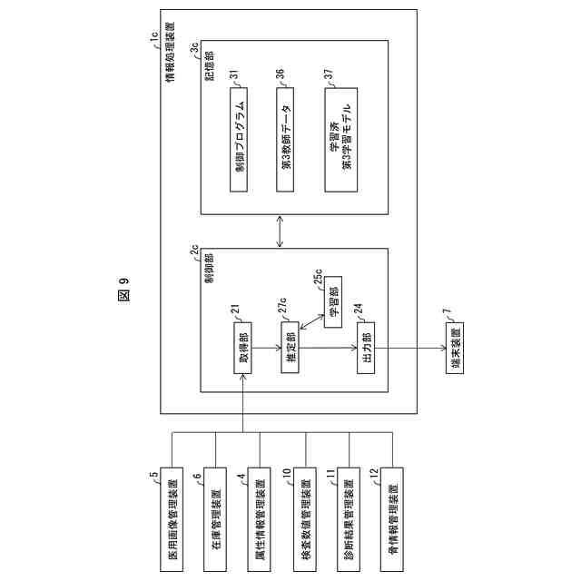前記第1教師データは、前記複数の学習対象者の各々の患部の骨に適用された外科的治療法を示す情報、該外科的治療法が適用される前の前記複数の学習対象者の各々の患部の骨が写る医用画像、および該複数の学習対象者の各々の患部の骨に埋設されたインプラントに関する情報を含む、請求項1または2に記載の情報処理システム。