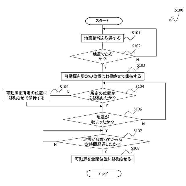 特許文献1には、地震が発生した場合には、屋外への退出を速やかに行うため、ゲートを強制的に開く自動ドア装置が記載されている。