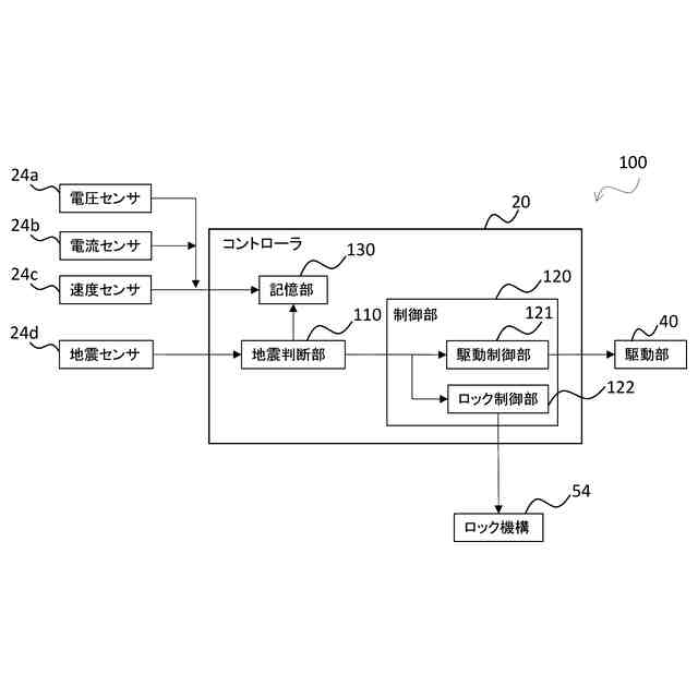 前記制御部は前記地震判断部が地震と判断したときに前記扉を所定の位置に保持する制御を実行する