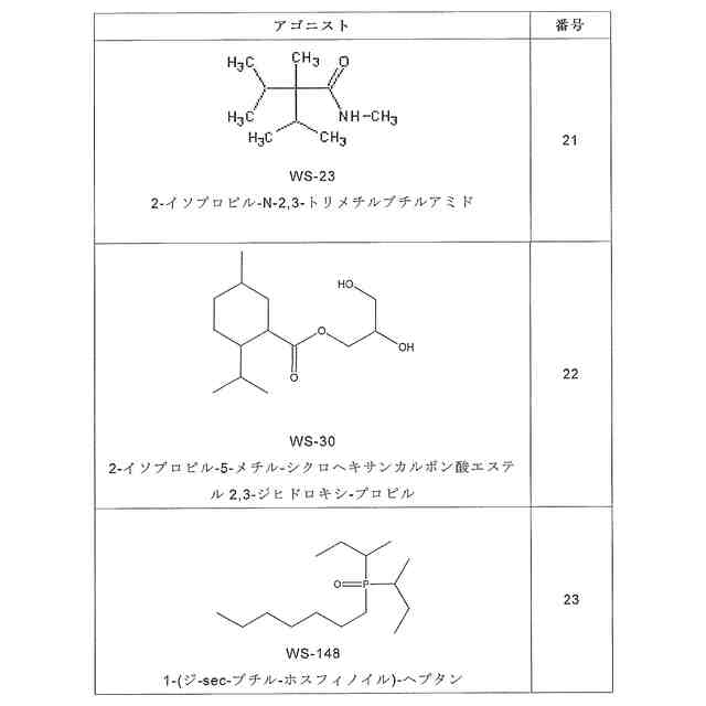 )、WS-23(2-イソプロピル-N-2,3-トリメチルブチルアミド)、WS-3
