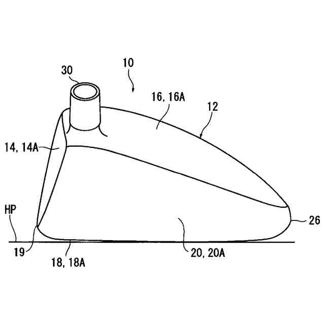 図19に示すように、ヘッド本体12は、それらフェース部14とクラウン部16とソール部18とサイド部20とで囲まれた内部が中空部28とされた中空構造を呈している。