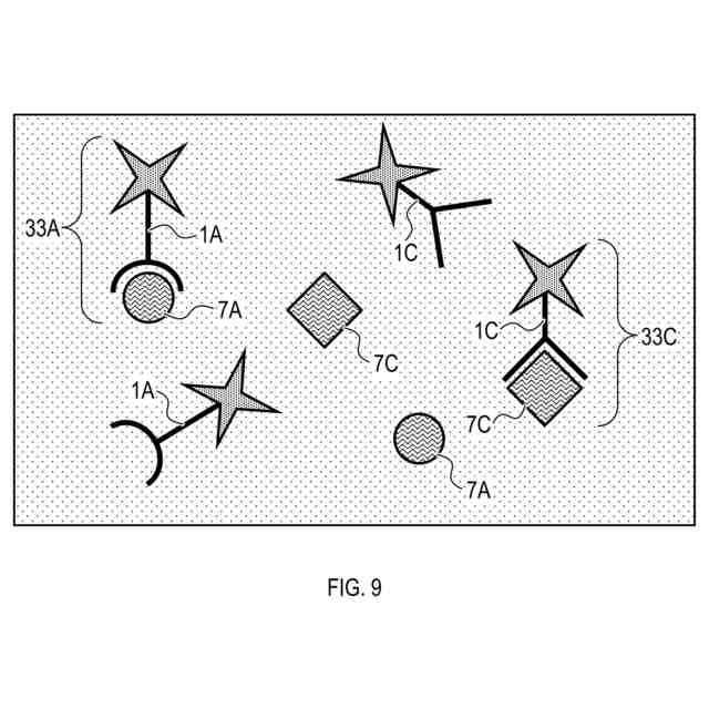 前記第1の結合物質は、核酸アプタマー、又は低分子タンパク質製剤である、