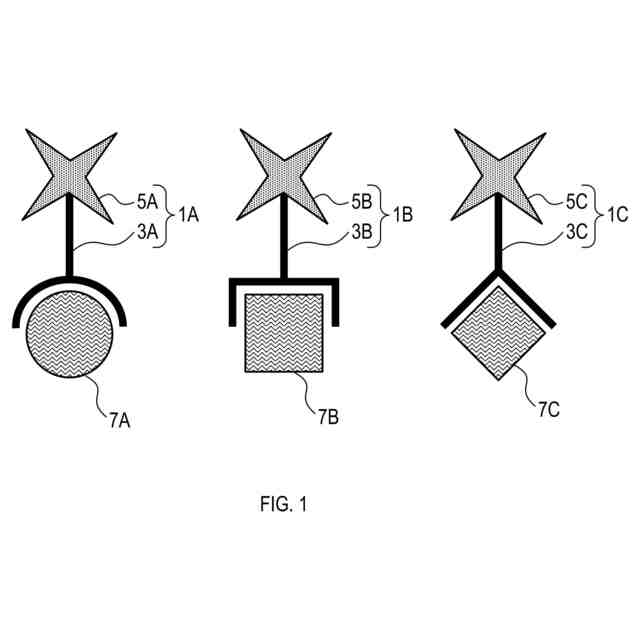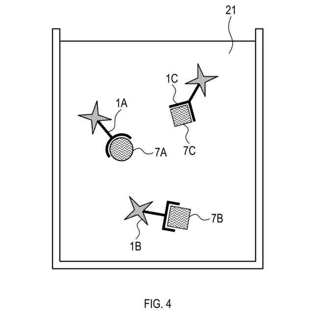 複数の種類の融合体の構成、及び、融合体と目的物質との結合を表す説明図である。
