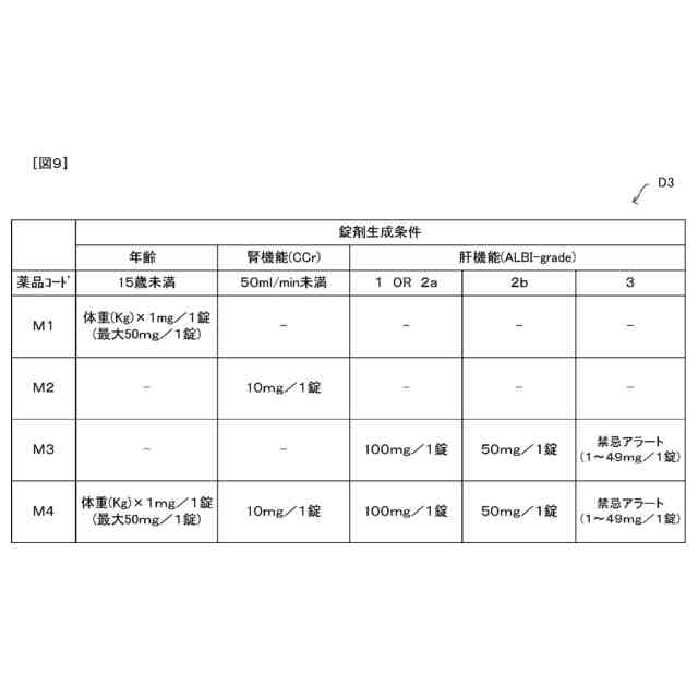 図9は、本発明の実施形態に係る薬品払出システムで使用される生成条件情報の一例を示す図である。