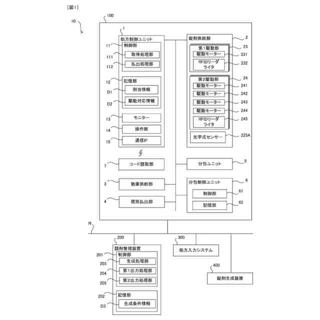 図1は、本発明の実施形態に係る薬品払出システムの構成を示すブロック図である。