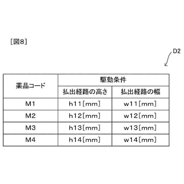 図8は、本発明の実施形態に係る薬品払出システムで使用される駆動対応情報の一例を示す図である。