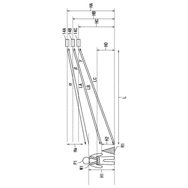 検出装置による人又は物の検出を示す図である。