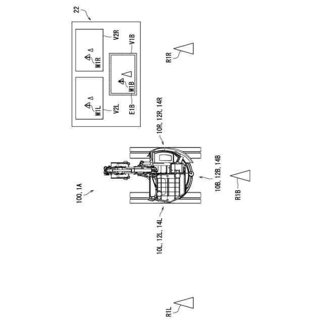 安全監視システムが搭載された作業車両を上方から見た図である。