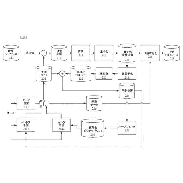 [0003] 映像は、視覚情報を取り込んだ静的ピクチャ(又は「フレーム」)のセットである。記憶メモリ及び伝送帯域幅を低減するために、映像を記憶又は伝送前に圧縮し、表示前に復元することができる。圧縮プロセスは、通常、符号化と称され、復元プロセスは、通常、復号化と称される。最も一般的には、予測、変換、量子化、エントロピー符号化及びインループフィルタリングに基づく、標準化映像符号化技術を用いる様々な映像符号化フォーマットが存在する。特定の映像符号化フォーマットを指定する、高効率ビデオコーディング(HEVC/H.265)規格、多用途ビデオコーディング(VVC/H.266)標準及びAVS規格などの映像符号化規格が標準化機関によって開発されている。進化した映像符号化技術が映像規格に次々と採用されるに従って、新たな映像符号化規格の符号化効率が一層高くなる。