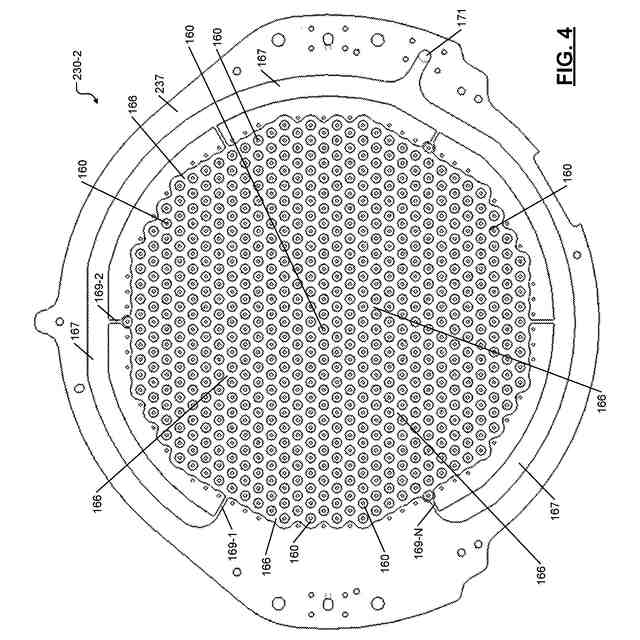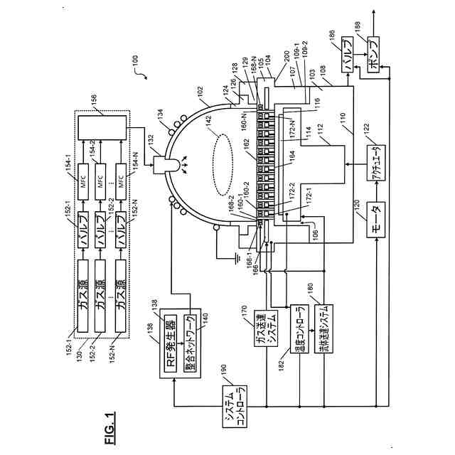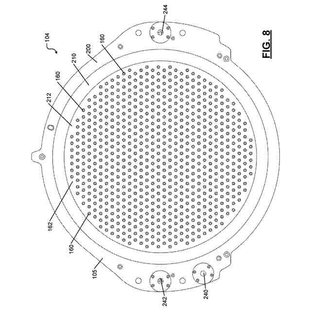 【解決手段】シャワーヘッドは、第1、第2、及び第3のコンポーネントを含む。第1のコンポーネントは、円盤状部分と、円盤状部分から垂直に延びる円筒部分とを含む。円盤状部分は、円盤状部分の中心から円筒部分の内径まで広がる、それぞれ第1及び第2の直径を有する孔の第1及び第2のセットを含む。第2のコンポーネントは、円盤状であり、第1のコンポーネントの円盤状部分に取り付けられており、孔の第2のセットと流体連通しているプレナムを画定し、かつ、周縁に沿って上面の両端にある一対の円弧状溝と、一対の円弧状溝の間に延びる複数の溝とを含む。第3のコンポーネントは、円盤状であり、第2のコンポーネントに取り付けられており、かつ、プレナムに接続されたガス入口と、円弧状溝に接続された流体入口及び出口とを含む。