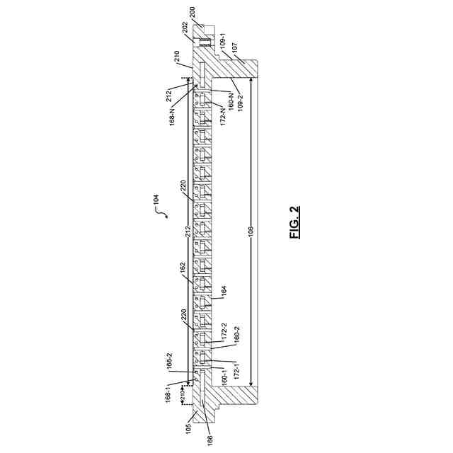 円盤状であり、前記第2のコンポーネントの前記第1の貫通孔と整列し、且つ、前記第1のコンポーネントの前記孔の第1のセットと整列している第2の貫通孔を含み、かつ前記第2のコンポーネントの前記上面に取り付けられた底面を有する、第3のコンポーネントと