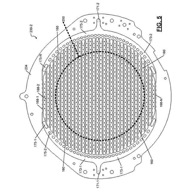 前記一対の円弧状溝及び前記複数の溝が、前記プレナム及び前記孔の第1及び第2のセットとは別個のものであり、