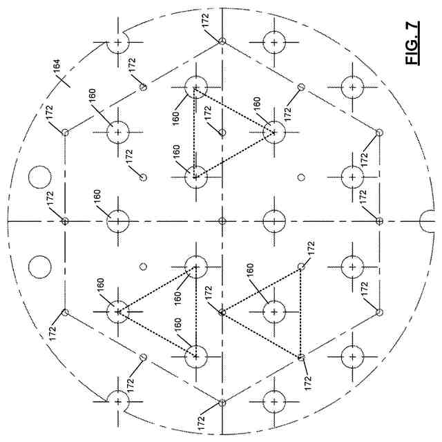 別の特徴において、孔の第1及び第2のセットは、三角形パターンで配置される。