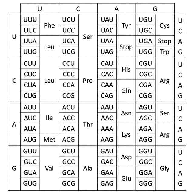 ここで、Aはアデニン、Cはシトシン、Gはグアニン、Uはウラシルである、
