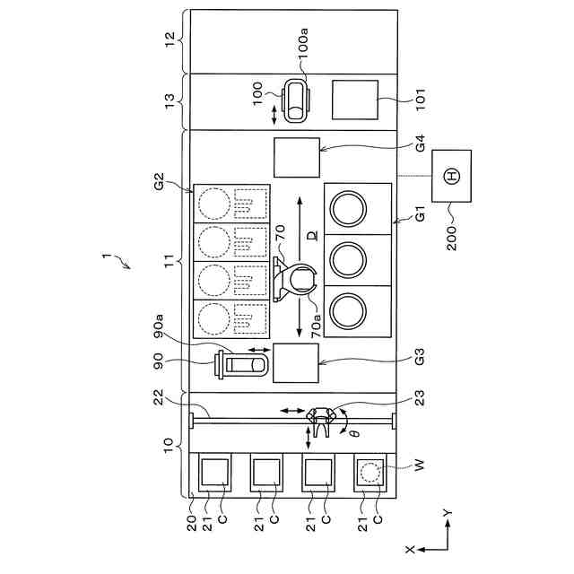 実施の形態にかかる基板処理システムの構成の概略を模式的に示す平面図である。