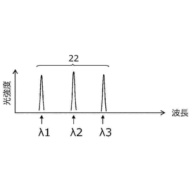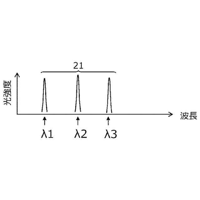 図4Aは、ピーク波長がλ1、λ2、およびλ3である3本のレーザビームが波長結合された第1波長結合ビームのスペクトルを模式的に示すグラフである。