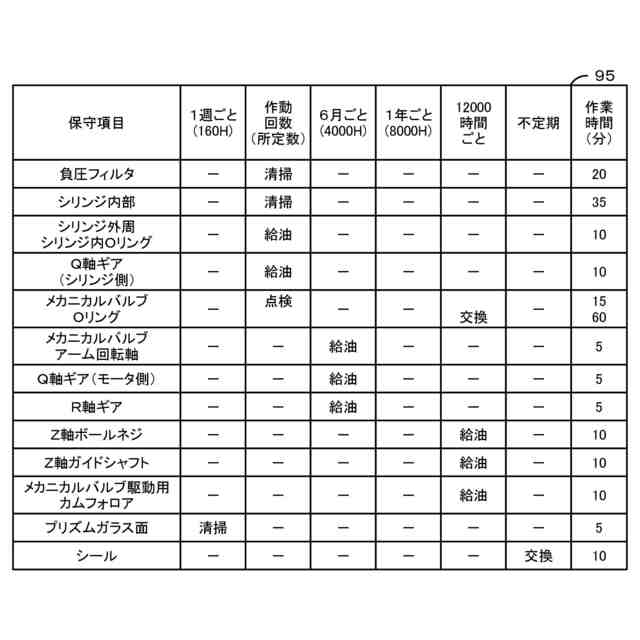 前記実装装置の構成物の項目ごとに作動回数及び/又は作動時間に対応する保守時期が設定された対応情報を記憶する記憶部と、