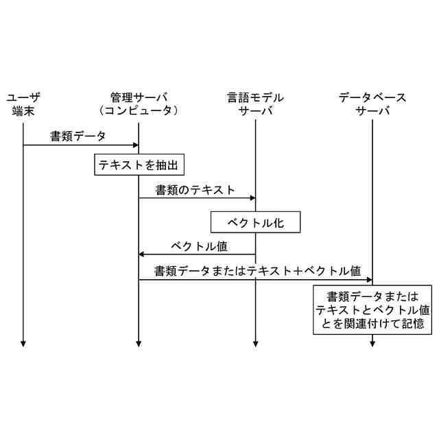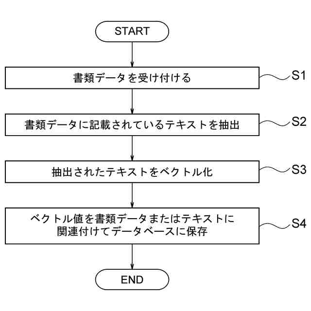 前記ベクトル値保存手段は、前記ベクトル化手段により取得されたベクトル値を、前記受付手段が受け付けた書類データまたはこの書類データから抽出されたテキストに関連付けて前記コンピュータの内部または外部のデータベースに保存させ、