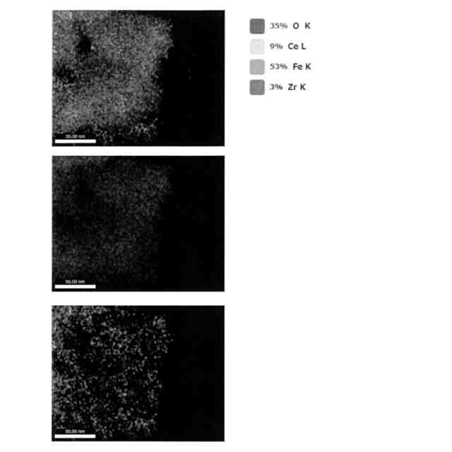 また、非特許文献1では、酸化鉄とジルコニウムを含む酸化セリウムとの混合金属酸化物の調製方法や、それらの混合比の検討が不十分である。このため、混合金属酸化物中において、金属酸化物の分散や存在比に偏りが生じる。その結果、酸素イオンや電子の授受に必要な金属酸化物同士の相互作用が低くなり、二酸化炭素からの一酸化炭素への変換効率が高められていない。