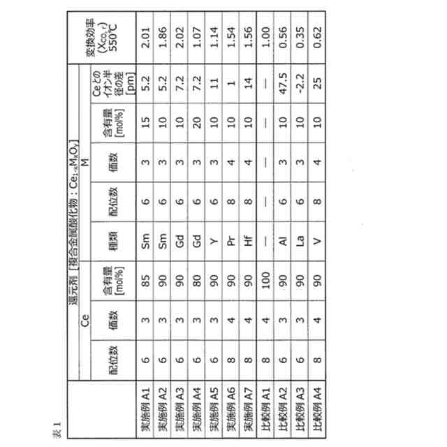 (ただし、Mは、そのイオン半径が同一価数かつ同一配位数のCeのイオン半径より小さい金属元素であり、xは、正の実数を示し、yは、1~4の実数を示す。)で表される複合金属酸化物を含むことを特徴とする。