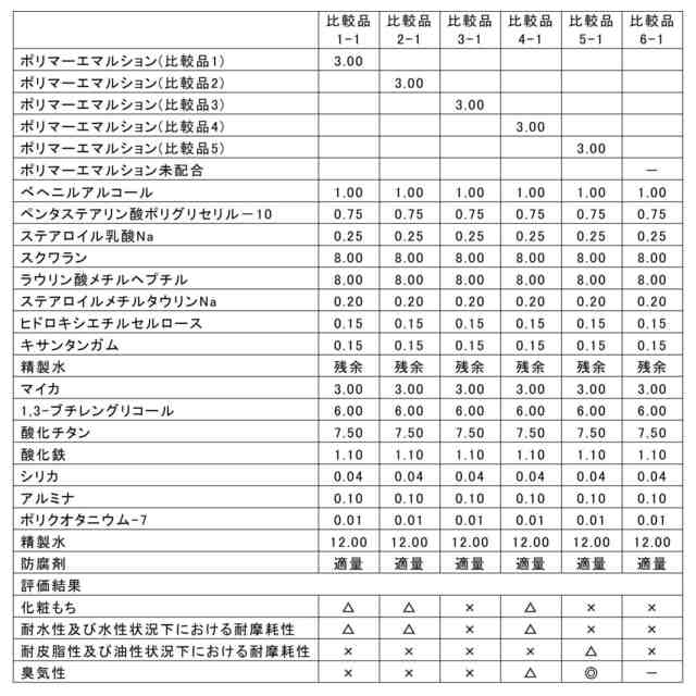 さらに水性ポリマーエマルションにより形成された皮膜の柔軟性が十分でないために、顔の表情変化(皮膚の動き変化)によって、その化粧膜が破壊されてしまい、化粧崩れが生じていることが確認されていた。また、耐水性及び水性状況下における耐摩耗性と耐皮脂性及び油性状況下における耐摩耗性は優れているが、柔軟性が劣る皮膜特性を与える水性ポリマーエマルションや、柔軟性は優れているが耐水性及び水性状況下における耐摩耗性と耐皮脂性及び油性状況下における耐摩耗性が劣るなど、耐水性及び水性状況下における耐摩耗性と耐皮脂性及び油性状況下における耐摩耗性、さらに柔軟性が備わった優れた皮膜特性を与える水性ポリマーエマルションを含有する化粧料や皮膚外用剤は無かった。