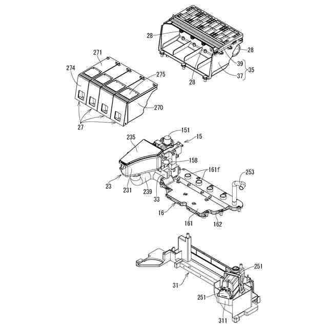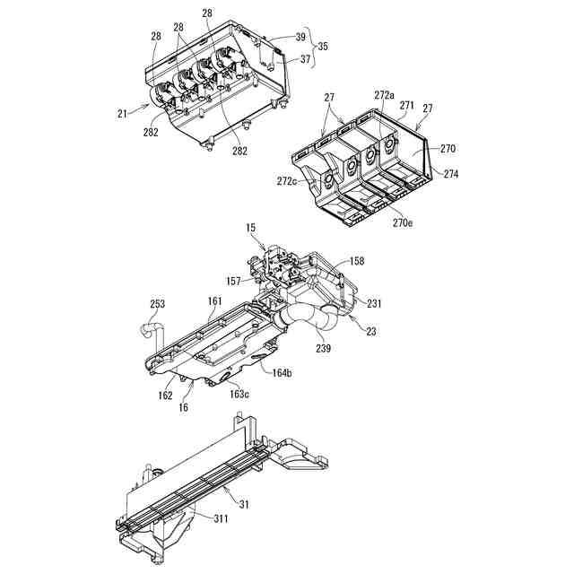 自動投入部及びその周辺部の分解状態を上方から見た斜視図である。