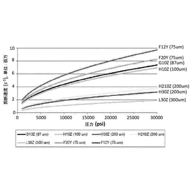 の剪断速度が生じる。一部の実施形態では、当該マイクロ流動化により、少なくとも約10×10