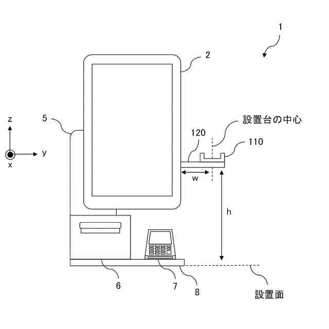 前記POS端末の側面に対する方向に延在する前記支持部は、前記POS端末が有するディスプレイの下端よりも高い位置に設置され、