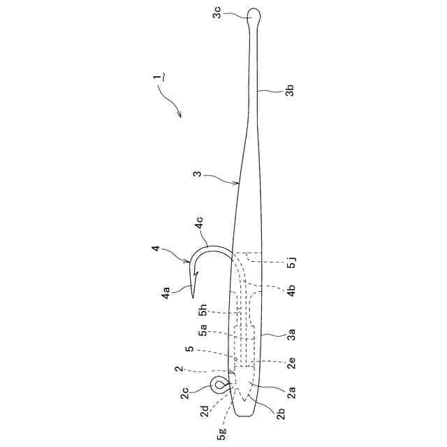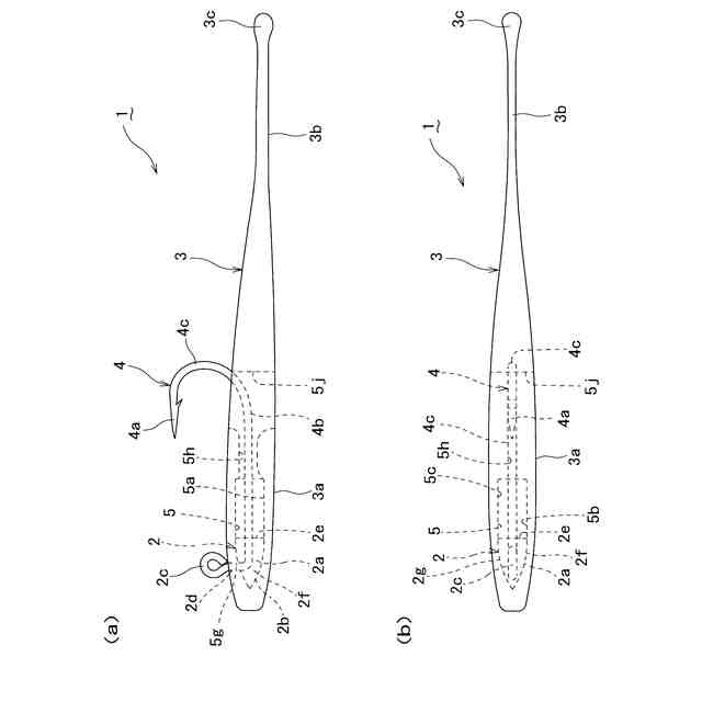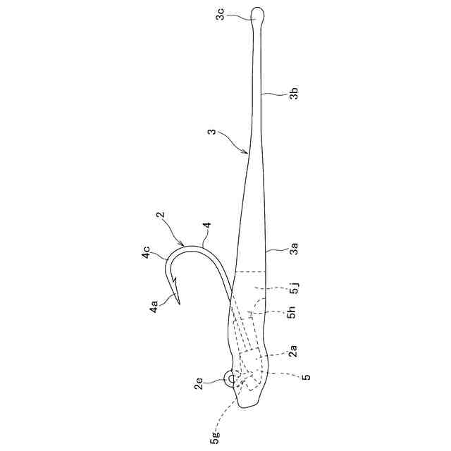 そして、特許文献1に記載のワームのジグヘッド取付構造は、「ワーム本体(1)にジグヘッド(3)のフック(3b)を正確に位置決め固定することができ、初心者や熟練者にかかわらず誰でも正確かつ容易にワーム本体(1)にジグヘッド(3)を装着することができる。」とされている。