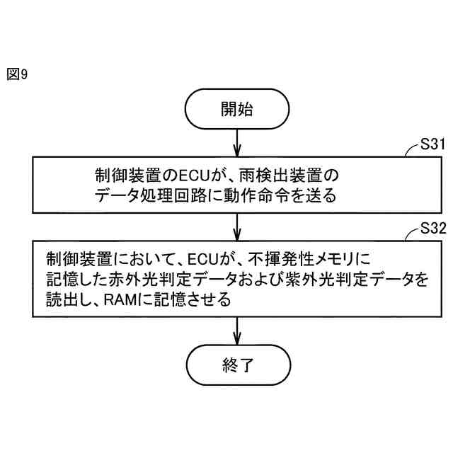 図10は、実施の形態2の雨検出システムのワイパー制御および異常対処制御を示すフローチャートである。[詳細な説明] 以下、本開示の実施の形態について、図面を参照しながら詳細に説明する。なお、以下では図中の同一または相当部分には同一の符号を付して、その説明は原則的に繰返さないものとする。以下では、複数の実施の形態について説明するが、各実施の形態で説明された構成を適宜組み合わせることは出願当初から予定されている。