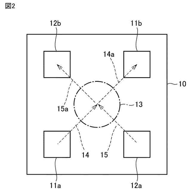 図2は、実施の形態1に係る雨検出装置における発光素子および受光素子の配置例を示す図である。