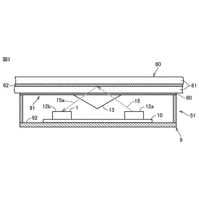 前記第1発光素子、前記第1受光素子、前記第2発光素子、および、前記第2受光素子は、紫外光の透過を抑制する中間層を有する3層ガラスに向けて配置することが可能であり、