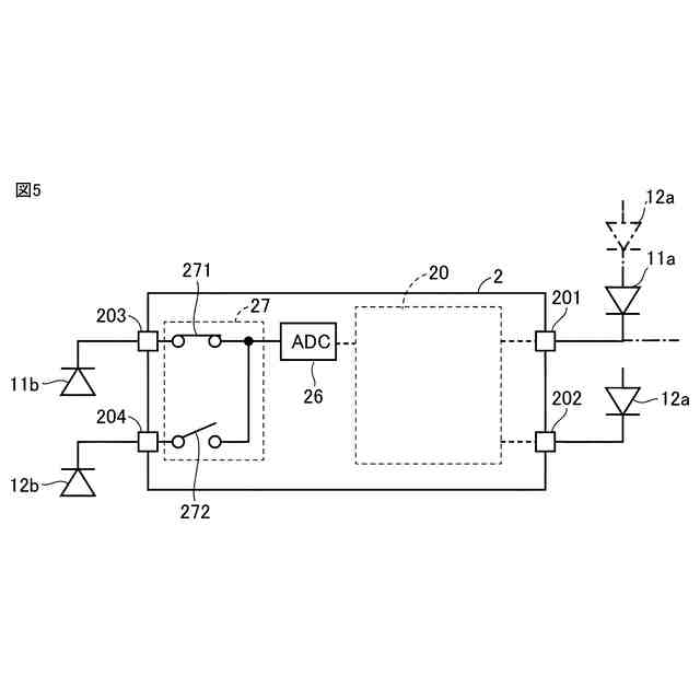 図5は、実施の形態1に係る第1受光素子および第2受光素子とADCとの関係を示すブロック図である。