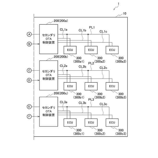 前記複数のセカンダリOTA制御装置にそれぞれ通信可能に接続されて、ソフトウェアの更新を実行する複数のターゲットECU(Electronic Control Unit)と、