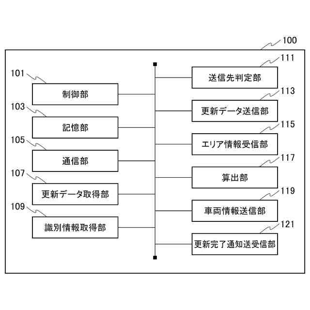 前記車両の停止時に、前記更新データを前記ターゲットECUに送信する第2更新データ送信部と、
