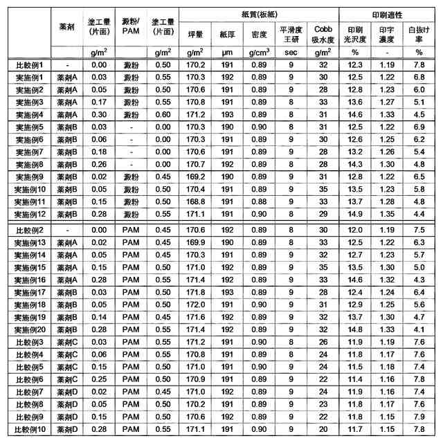 特許文献1、2に記載の板紙は、パルプ組成を工夫することにより印刷適性を向上させたものである。本発明者等は、鋭意研究の結果、パルプ組成に依らずに印刷適性を向上させられる構成を見出し、本発明を完成させるに至った。