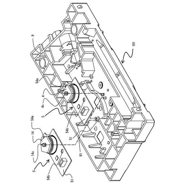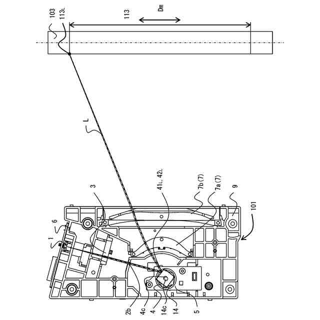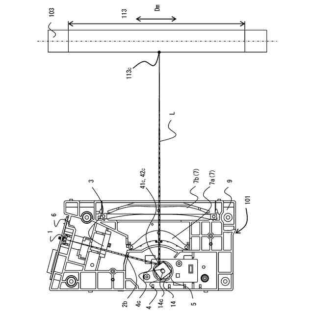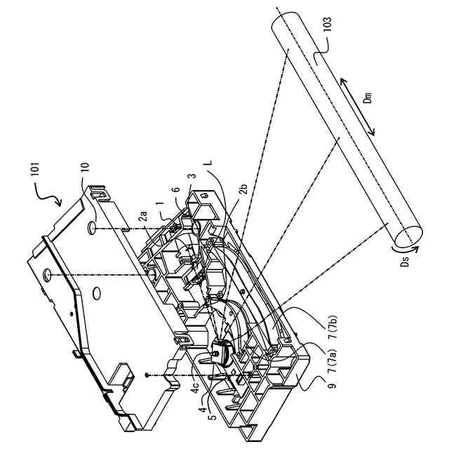 前記光学箱は、前記同軸部の軸方向に直交する平面内における少なくとも一方向を規制し、前記平面内において前記一方向と直交する方向である他方向は規制していない点対称の穴形状部を有し、