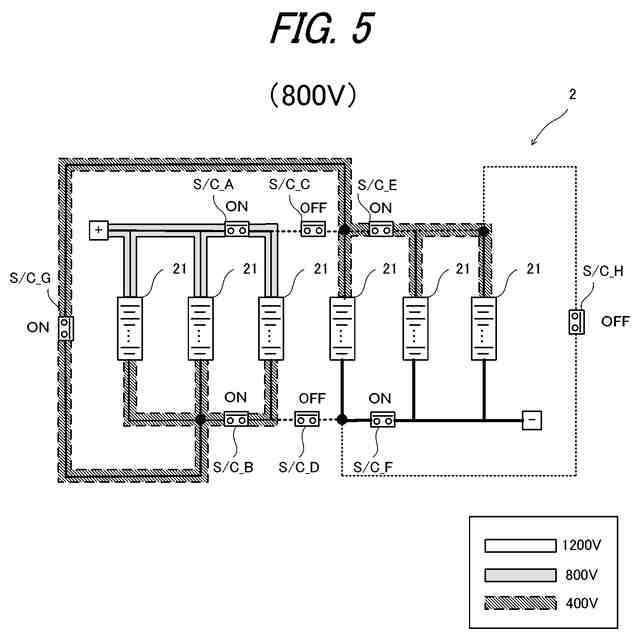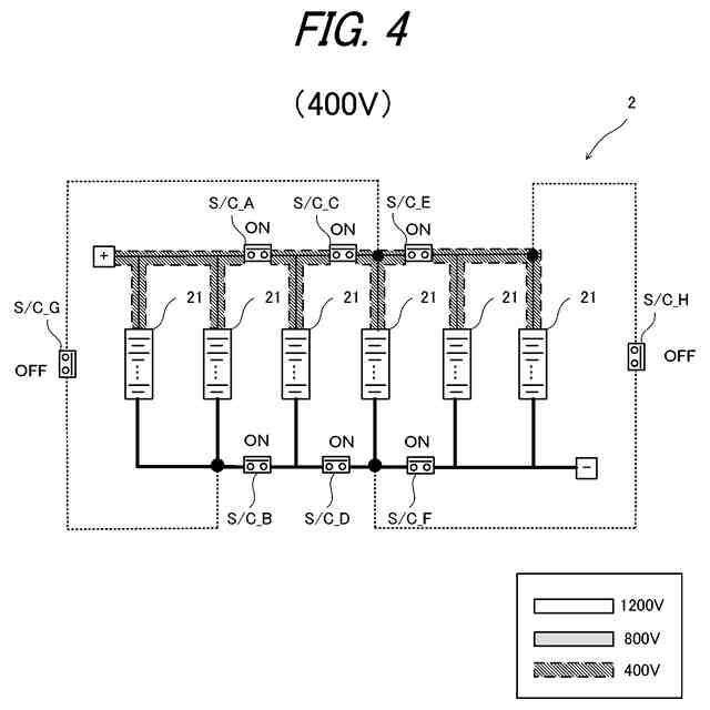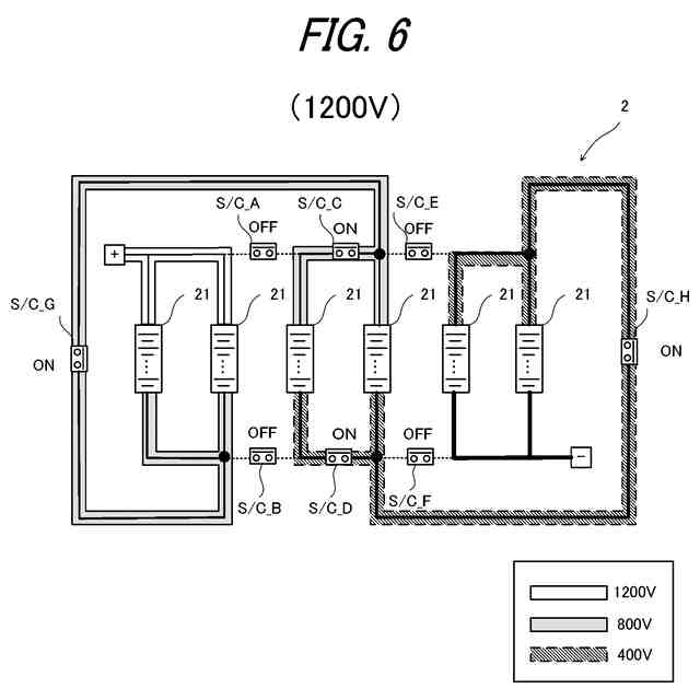 二次電池を搭載するモビリティにおける充給電に関し、充電スタンド等の充電設備には上限電圧が500Vの400V級、及び、上限電圧が1000Vの800V級の2種類が存在する。モビリティが400V級の充電設備にしか対応していない場合、800V級の充電設備の急速充電性能を享受することができない。