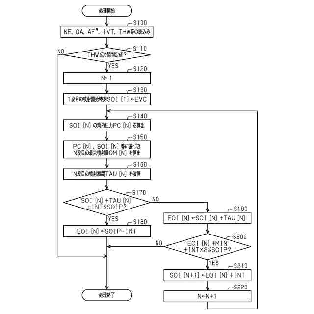 多段噴射に際して上記燃料噴射制御装置が実施する処理のフローチャートである。