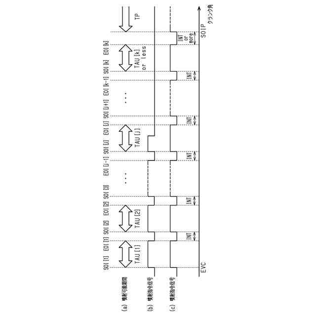 上記燃料噴射制御装置による多段噴射時の、(a)は噴射期間の設定態様の一例を、(b)及び(c)は噴射指令信号の出力態様の一例及び他の例を、それぞれを示すタイムチャートである。