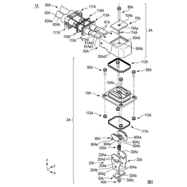本開示の接続体は、例えば、数百アンペアの大電流向けのコネクタである。但し、本開示の接続体は、電流の大きさに制限はなく、更に大きな電流、あるいはこれよりも小さな電流での適用を妨げない。本実施形態における接続体1Aは、図1,2に示すように、ヘッダー2Aと、ヘッダー2Aと嵌合されるプラグハーネス3Aとから構成されている。