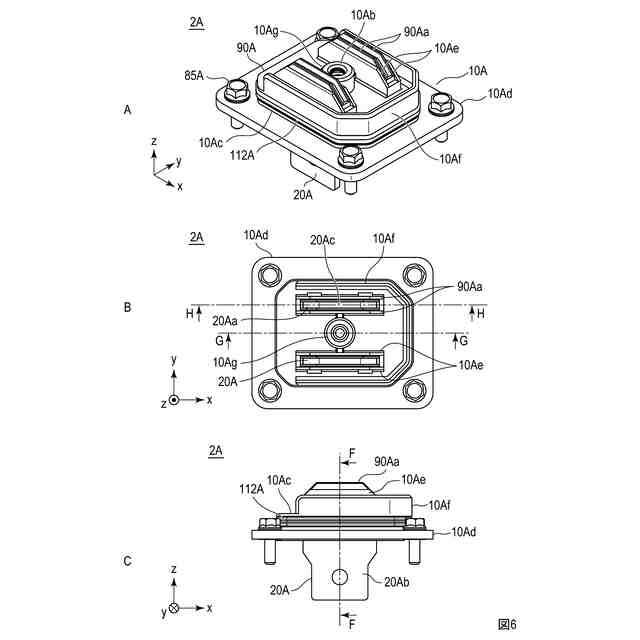 図11は、第2実施形態に係る接続体の一実施例を示した図であり、Aは斜視図、Bは平面図、Cは左側面図である。