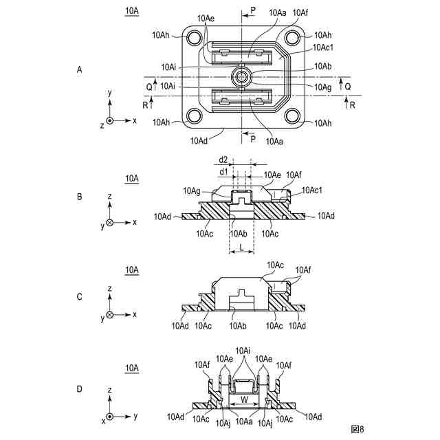 図8は、第1ハウジング10Aを示した図であり、Aは平面図、BはAのQ-Q断面図、CはAのR-R断面図、DはAのP-P断面図である。