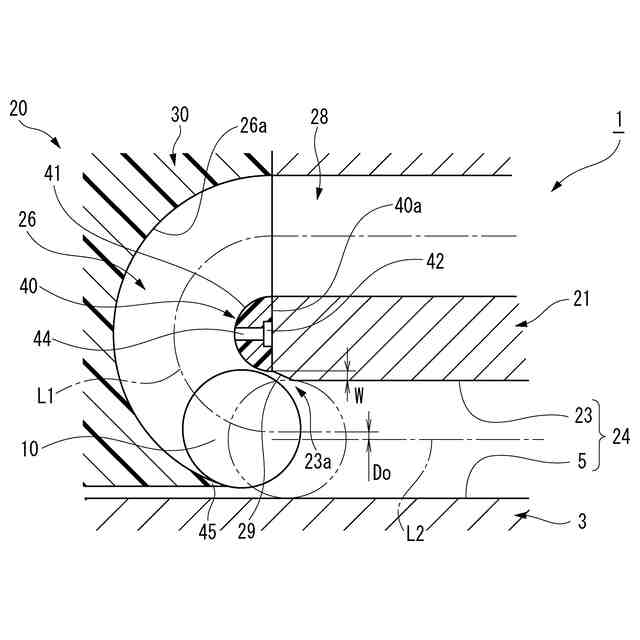 また、特許文献2に開示された直動案内軸受装置(リニアガイド)では、曲線軌道出入口(転動体戻し路出入口)におけるボールの遊びを、曲線軌道内でのボールの遊び代より小さくして、曲線軌道出入口におけるボールの遊びを小さくした構成としている。そこで、ボールが周囲の案内部材やレールに衝突する回数が低減し、騒音が低減されると共に高作動性となる。