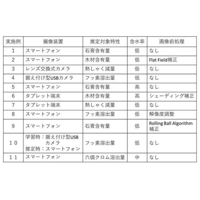 熱重量分析は、専用の試験機が必要で分析に長時間を要するため現場での測定には向かない。統計的画像解析は粒子毎に分離されていない画像では、素材を判別することができない。特許文献1の技術は、試料の含水率について言及しておらず、熱しゃく減量及び化学物質溶出量を推定するものではない。特許文献2の技術は、機械学習を利用して複数物質の混合比率を推定するものであるが、試料の含水率に関して考慮しておらず、また熱しゃく減量及び化学物質溶出量を推定するものではない。