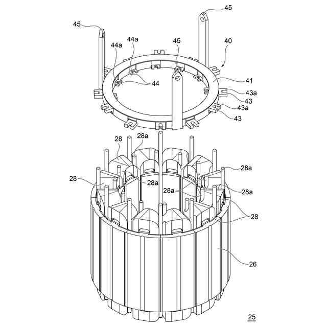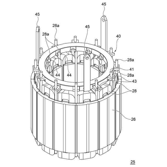 一具体例に係るステータアセンブリ25の構造を概略的に示す斜視図である。
