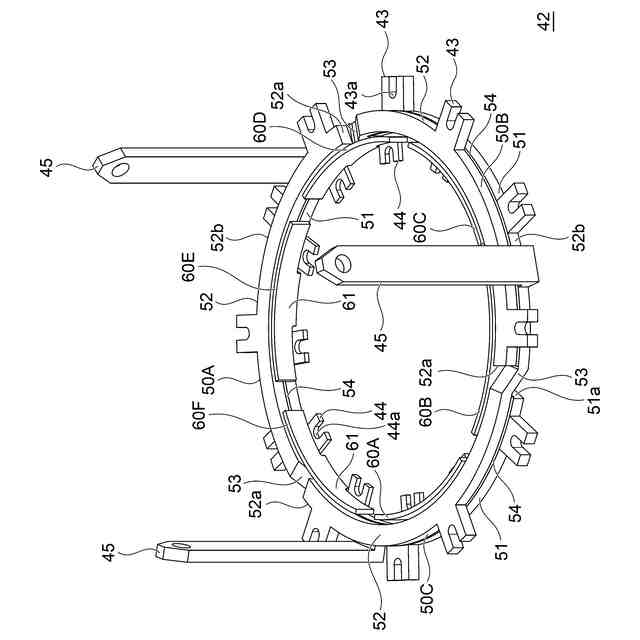 一具体例に係るステータアセンブリ25の構造を概略的に示す分解斜視図である。