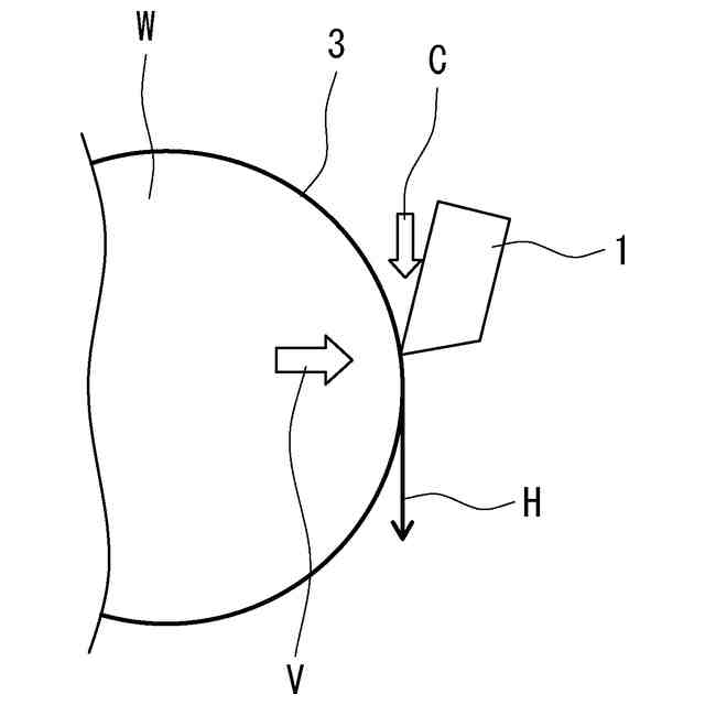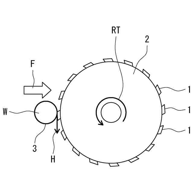 使用するチップソーはホイール型のチップソーである場合、回転しているチップの接線方向に対して垂直方向となるように基材をチップソーへ向けて押し当てる。