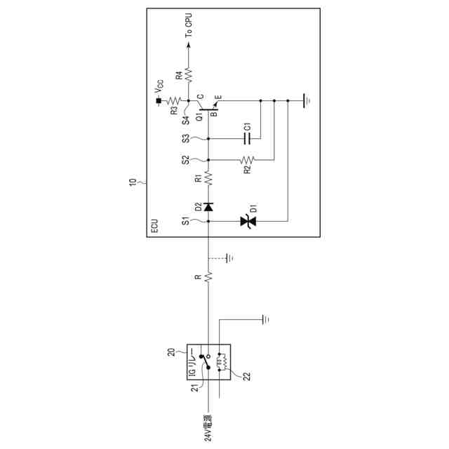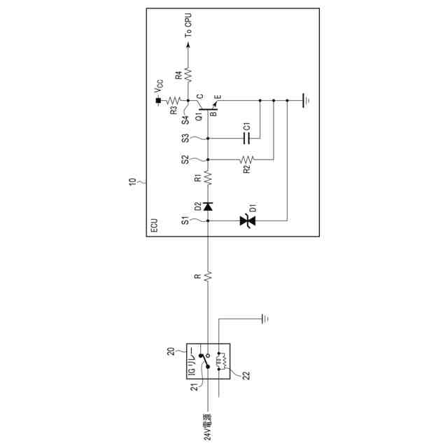 前記抵抗に接続され、前記抵抗により降圧された電圧により、前記リレーに入力信号が入力された状態を検出可能であるECUと、