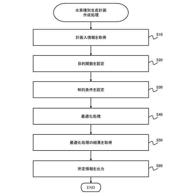 特許文献1には、「水素発生装置を備える水素製造制御システムの稼働計画を生成する装置であって、前記稼働計画の対象期間より前における、生成の環境負荷が異なる複数種類の水素の需要先における水素の需要量、前記需要先の情報、前記複数種類の水素の消費量、天気情報、前記対象期間における、前記複数種類の水素の予測消費量、および前記水素製造制御システムの稼働予測の少なくとも1つを含む需要予測因子を用いて、前記複数種類の水素のそれぞれについての予測需要量を生成する需要予測モデルを生成する需要予測モデル生成部と、前記稼働計画の対象期間における、前記複数種類の水素のそれぞれについての予測需要量を、前記需要予測モデルを用いて前記需要予測因子に基づいて生成する需要予測部と、前記複数種類の水素のそれぞれの予測水素需要量に基づいて、生成の環境負荷が異なる複数種類の水素を前記水素発生装置により生成する前記稼働計画を生成する稼働計画部とを備える装置。」という記載がある。